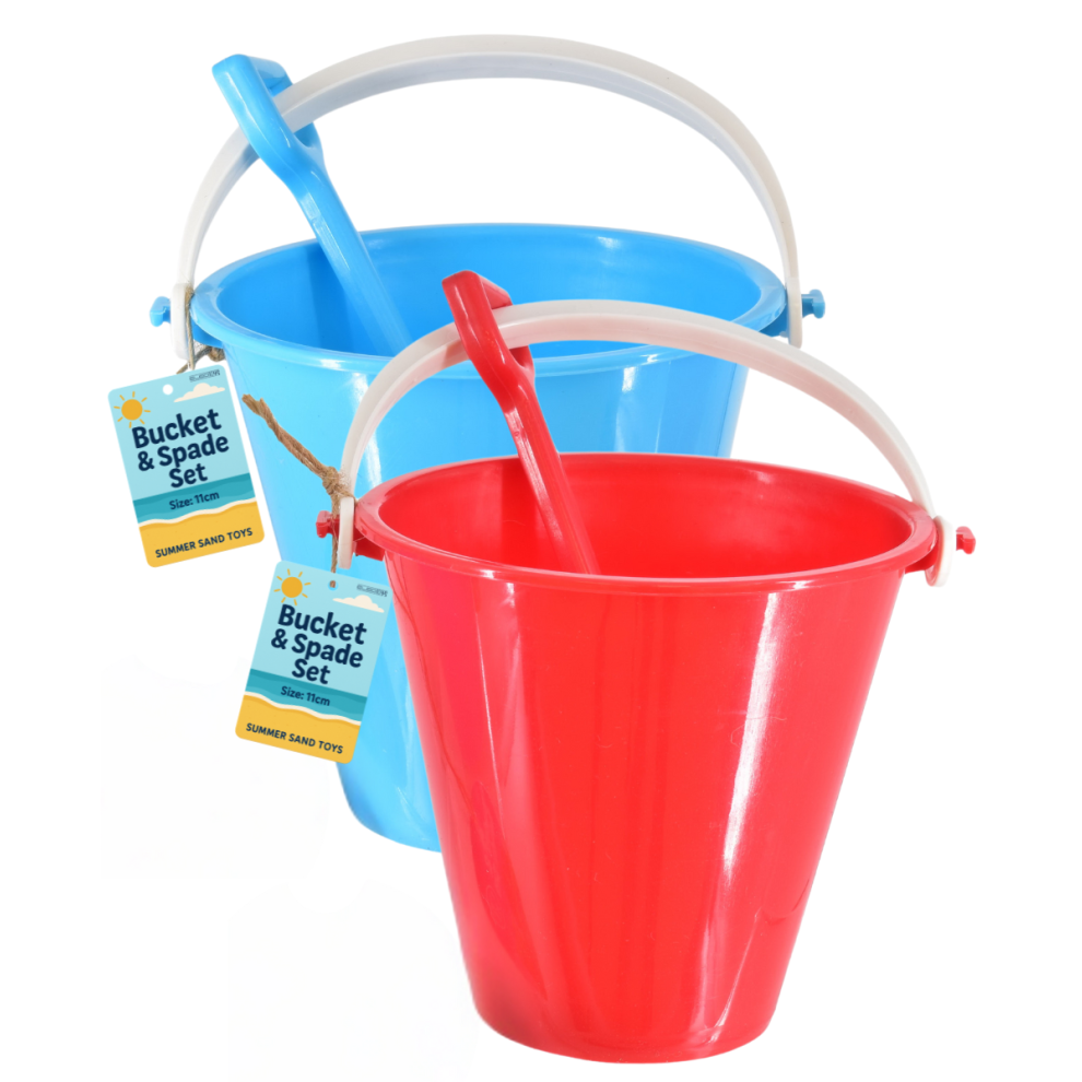 Beach Bucket and Spade Set 11cm Summer Sandpit Toys - Assorted Colours