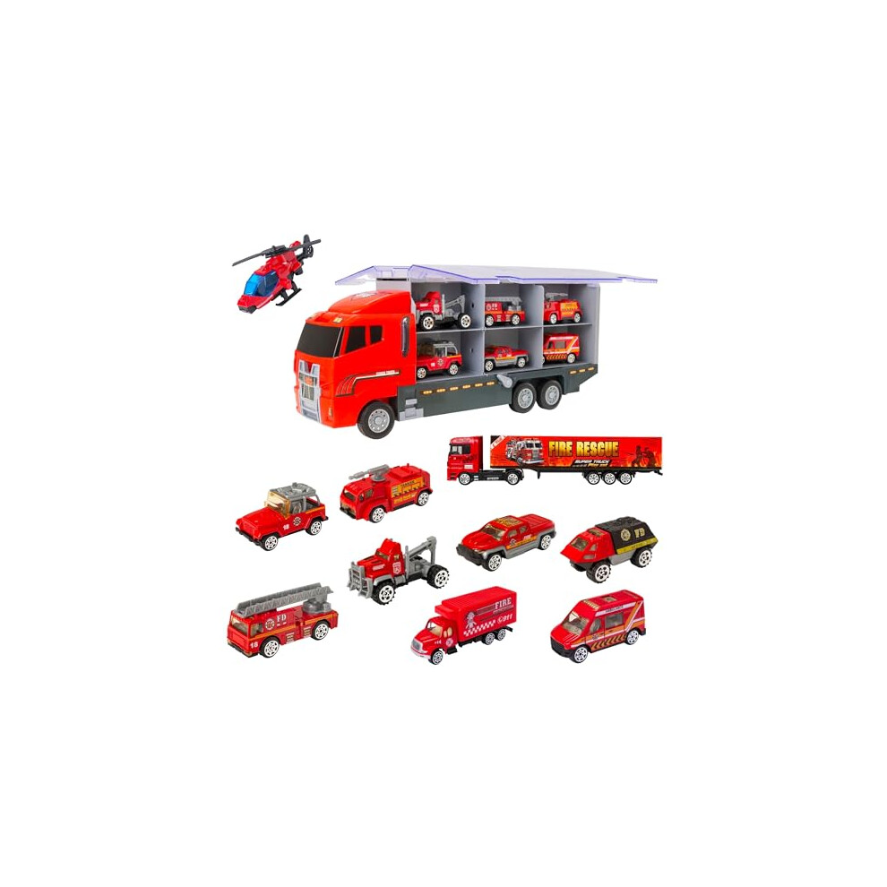 Teamsterz Fire Service Transporter Vehicle Playset | Fire engine, Lorry And Fire Service Vehicle Toys | Indoor And Outdoor Sandpit Toys | Toy Car Launcher | Cars Storage And Ramp | Ages 3+