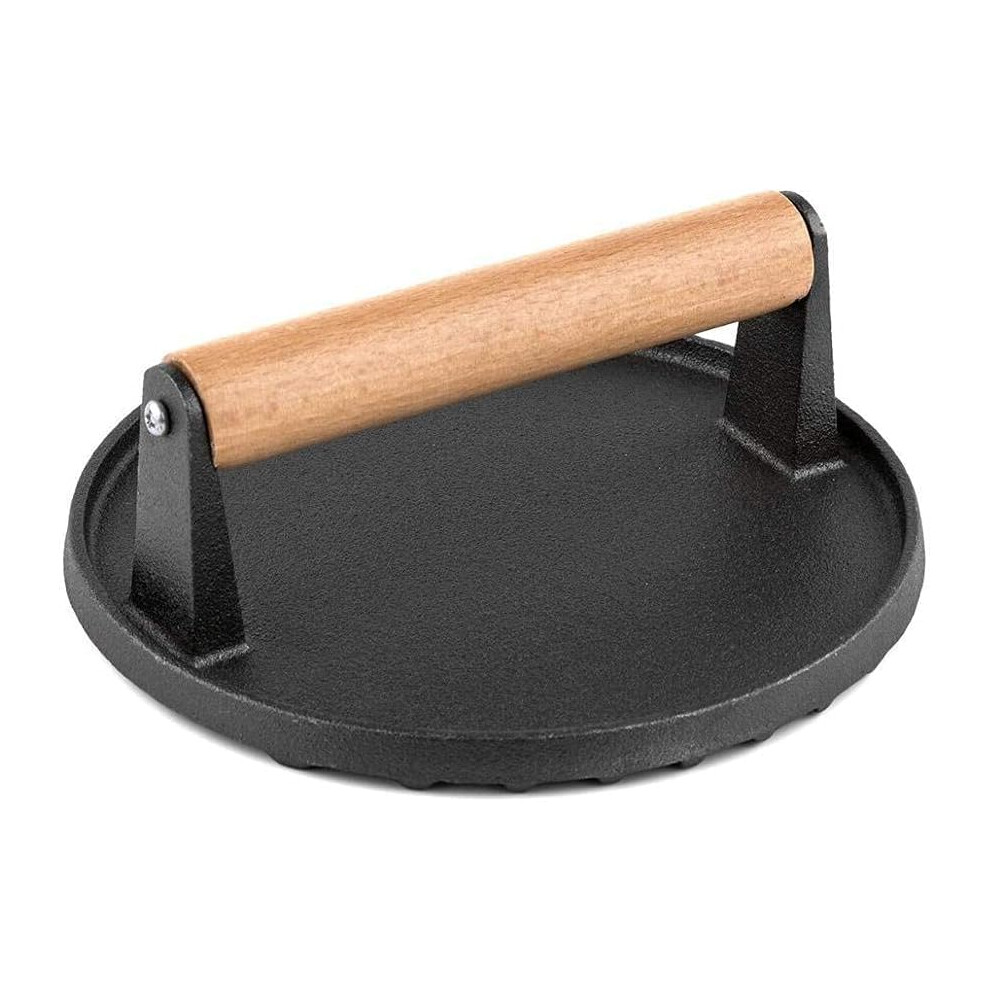 Burger Press 7-Inch Cast Iron Bacon Press Quesadillas With Solid Wood Handle Preseasoned Sandwich Grill Press