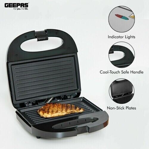 Geepas Panini Press Healthy Grill Non-Stick Powerful Toaster Sandwich Maker 750W