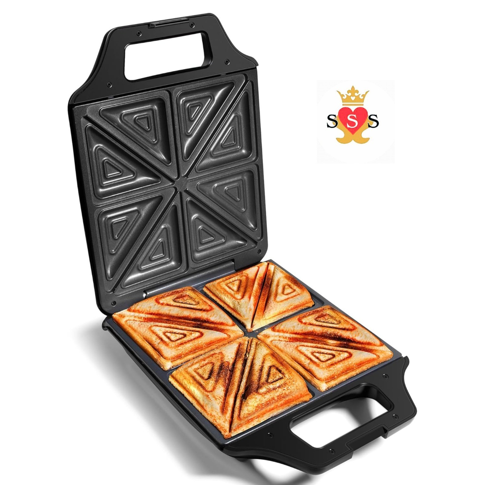 Snailar 2 Slice Sandwich Toaster with Triangle Plates, Non-Stick, PFOA Free, Cool Touch Handle, 750W, Black
