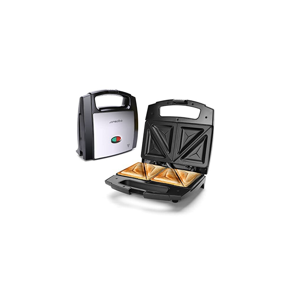 Aigostar 800W Sandwich Toastie Maker 2 Slice Toaster with Easy Clean Non-Stick Hot Plates, Cool Touch Handle, Locking Latch, Stainless Steel, Black - Lamo 30RUE