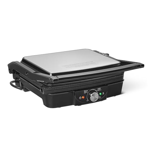 Amazon Basics Sandwich Toaster & Indoor Electric Grill with Temperature Control, Non-Stick Ceramic Plates, 2000W, Black