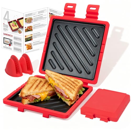 Microwave Toastie Sandwich Maker, Microwave Toastie Maker with Removable Non-Stick Plates, Quick Cooking and Easy Cleaning,Breakfast Sandwich Maker Perfect for Sandwiches,Paninis, and Fried Eggs (Red)