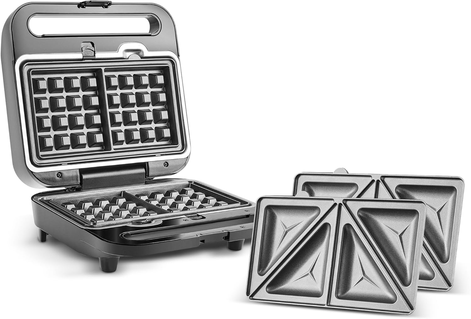 Tote 2-In-1 Sandwich Toaster & Waffle Maker with Non-Stick Plates, 1000W, Inox,