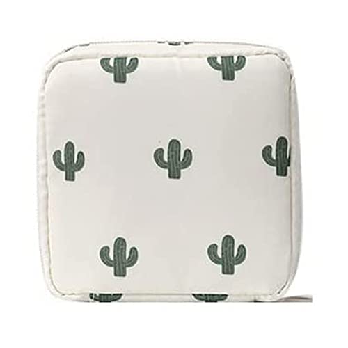 ZOBRO Sanitary Napkin Storage Bag Cartoon Heart/Ice Cream Sanitary Napkin Pads Storage Pouch Mini Portable Makeup Pouch Cotton Cloth Zipper Sanitary Napkin Bag,White Cactus