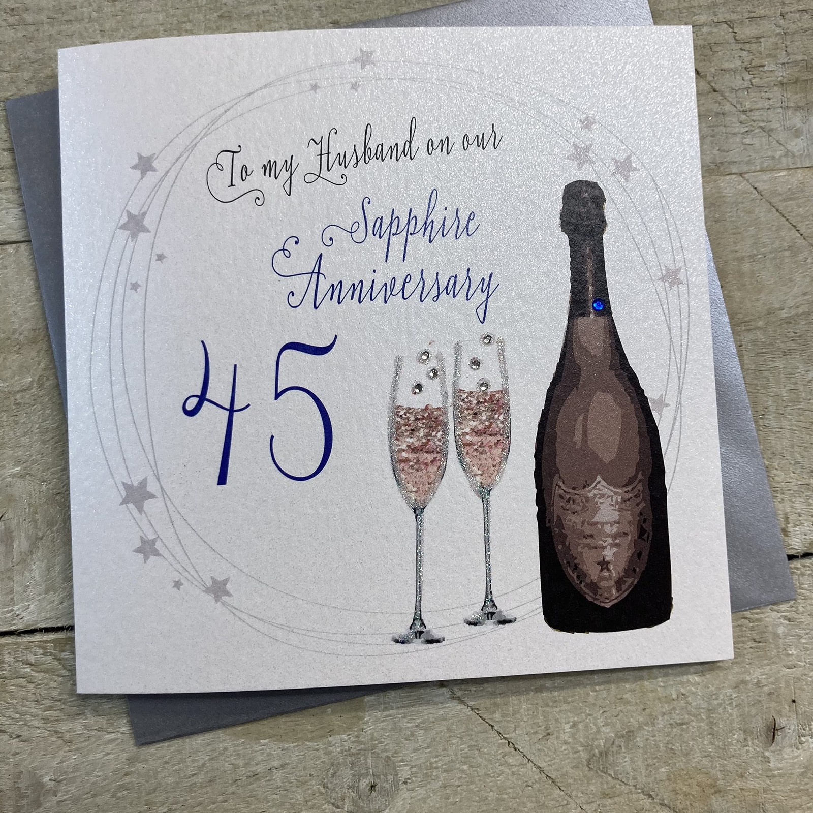 Sapphire Anniversary Card Husband 45 Years Verse Champagne Glasses