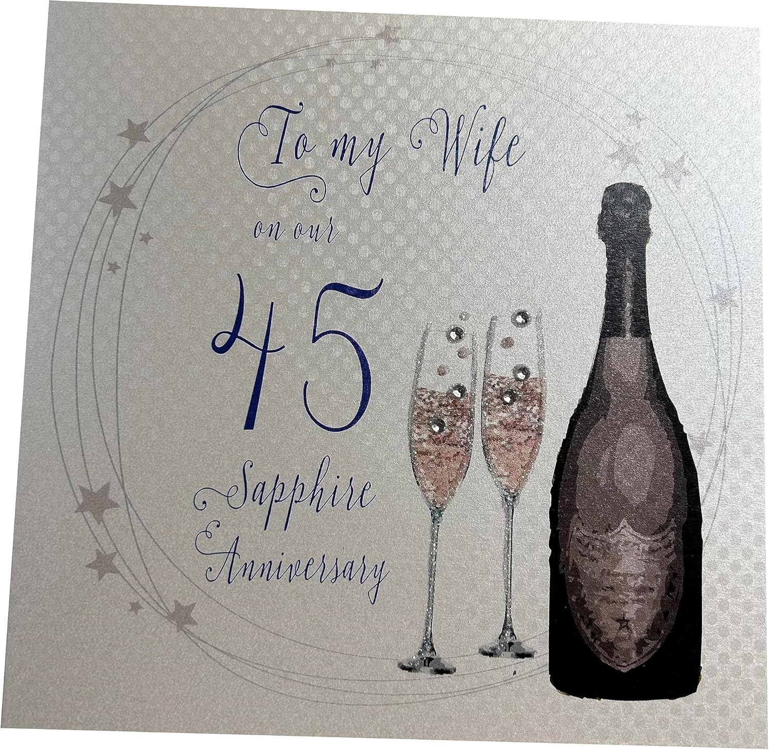 White Cotton Cards Champagne Flutes to My Wife On Our Sapphire Handmade 45th Anniversary Card, White, P45W