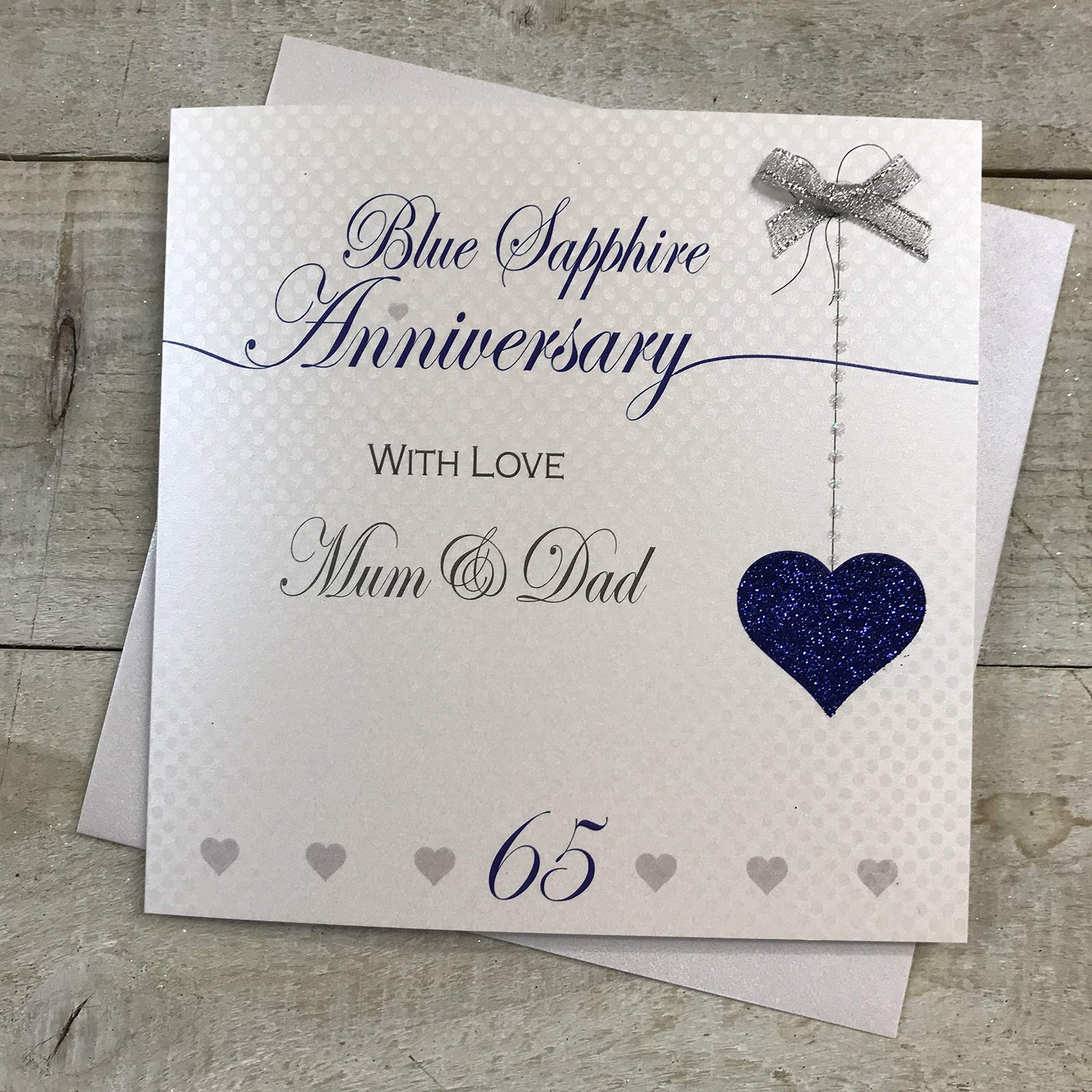 MUM DAD 65TH BLUE SAPPHIRE ANNIVERSARY CARD, HAND FINISHED DA65-M