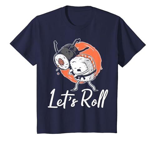 Let's Roll Sushi Sashimi Japanese Asian Food T-Shirt, Youth, Navy Blue, Small