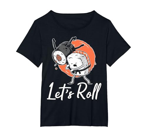 Let's Roll Sushi Sashimi Japanese Asian Food T-Shirt, Women's Plus, Black, 1X