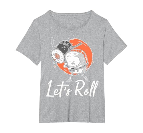 Let's Roll Sushi Sashimi Japanese Asian Food T-Shirt, Women's Plus, Heather Grey, 6X