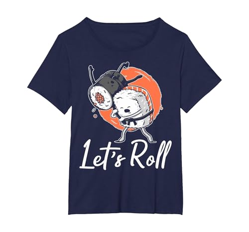Let's Roll Sushi Sashimi Japanese Asian Food T-Shirt, Women's Plus, Navy Blue, 4X