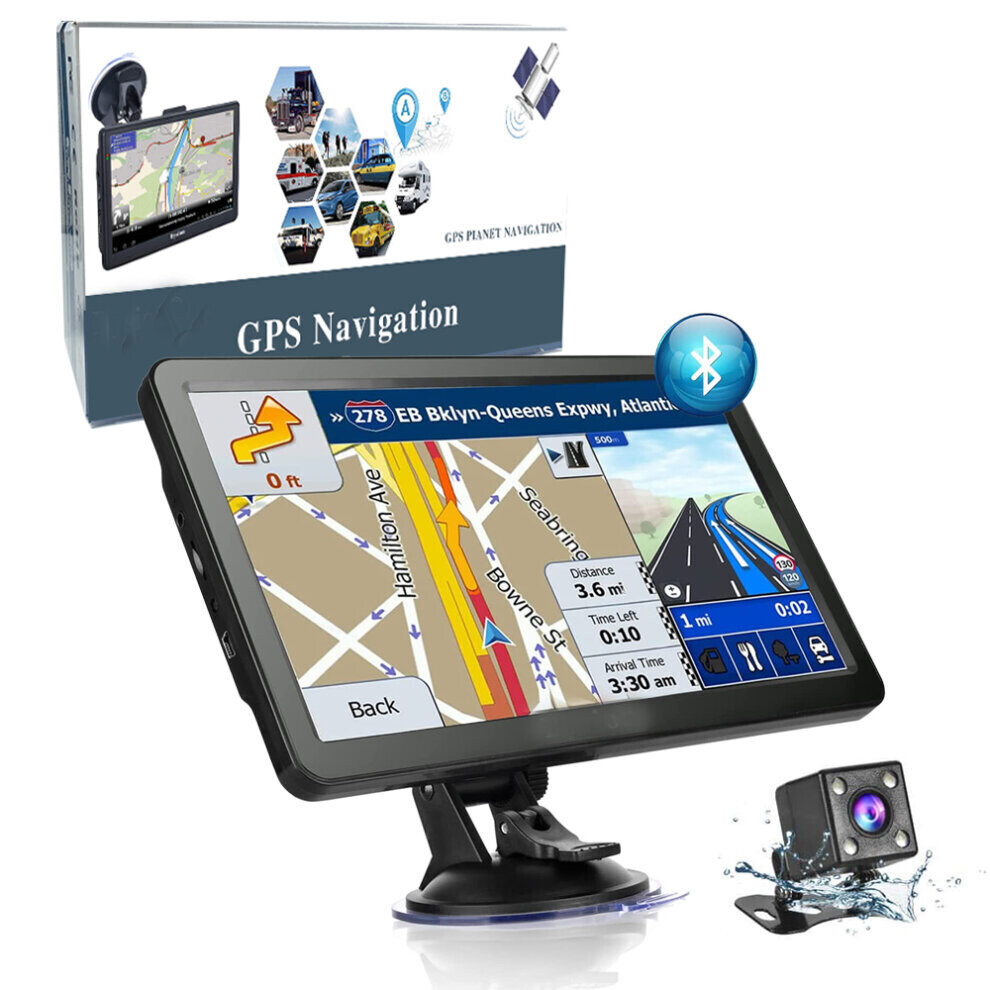 Bluetooth Sat Nav with Reverse Camera UK/EU 2024 Maps 7 inch GPS Navigation for Cars Trucks with Postcode Speed Camera Alert POI