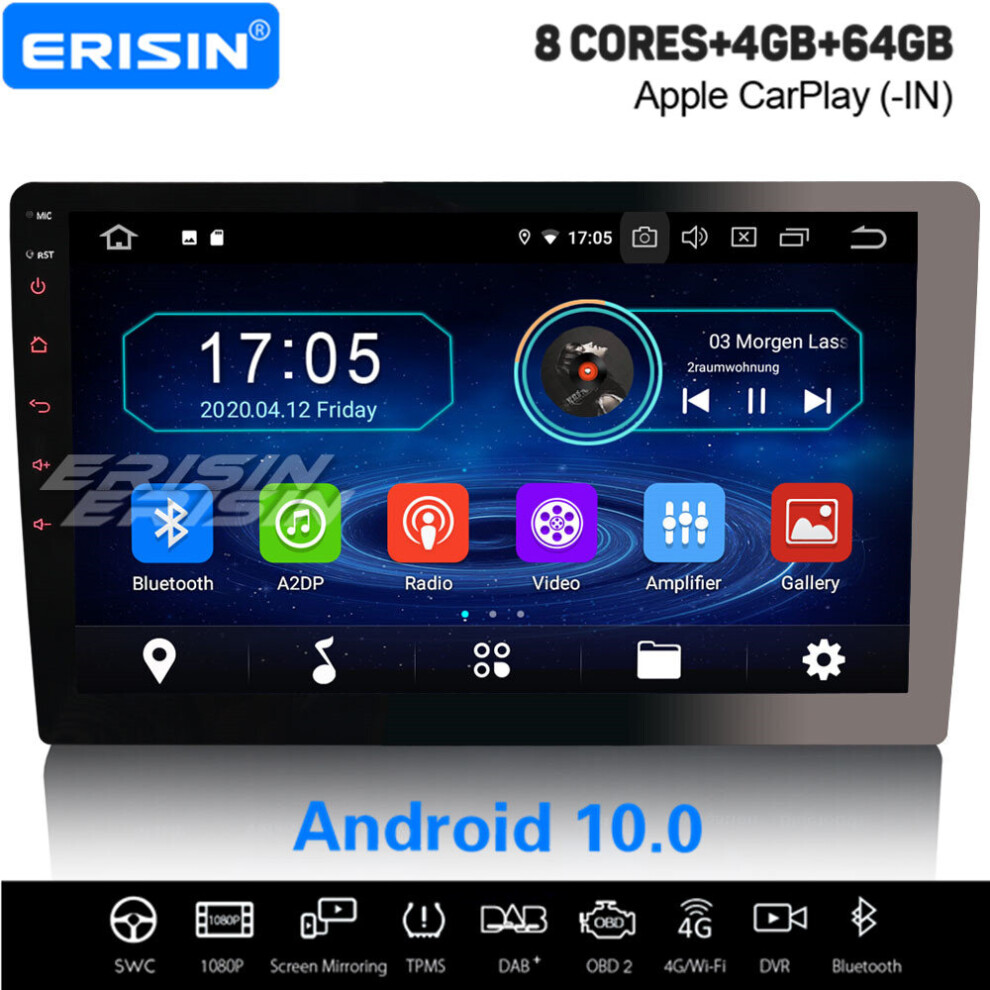 10.1" 8-Core Android 10.0 CarPlay Universal 1Din Car Stereo DAB+ Sat Nav Bluetooth DVR TPMS WiFi