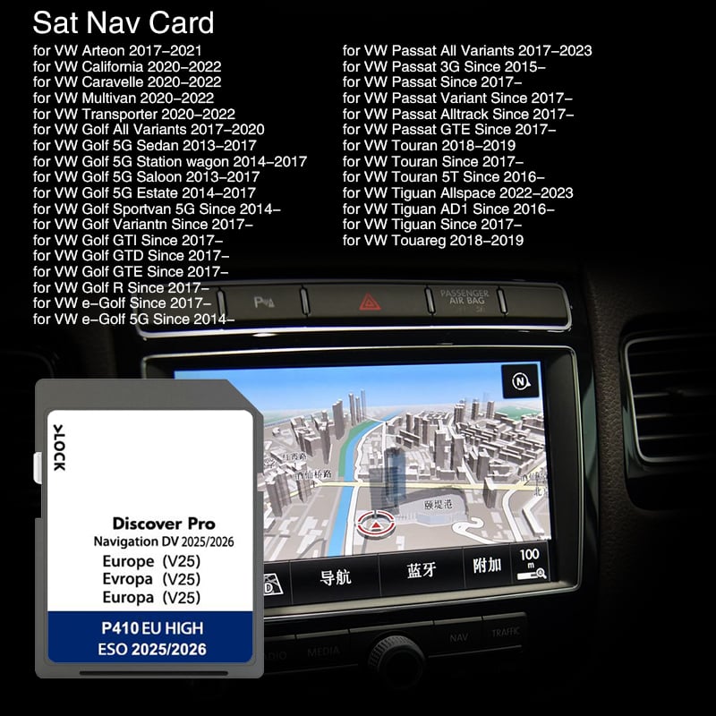 for VW Passat Touran Tiguan Car Discover Media Pro Update 2025/2026 UK Ireland Europe Map Sat Navigation DV V25 64GB SD Card