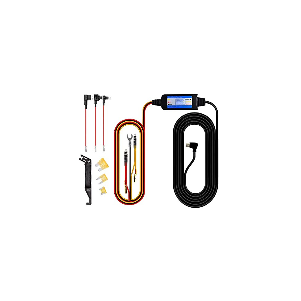 Dash Camera Hardwire Kit-Micro USB Port 4M Cable 3 Fuse Types Input 12V to 30V Output 5V For Dash Cams Sat-Navs & GPS Trackers. Battery Low Voltage