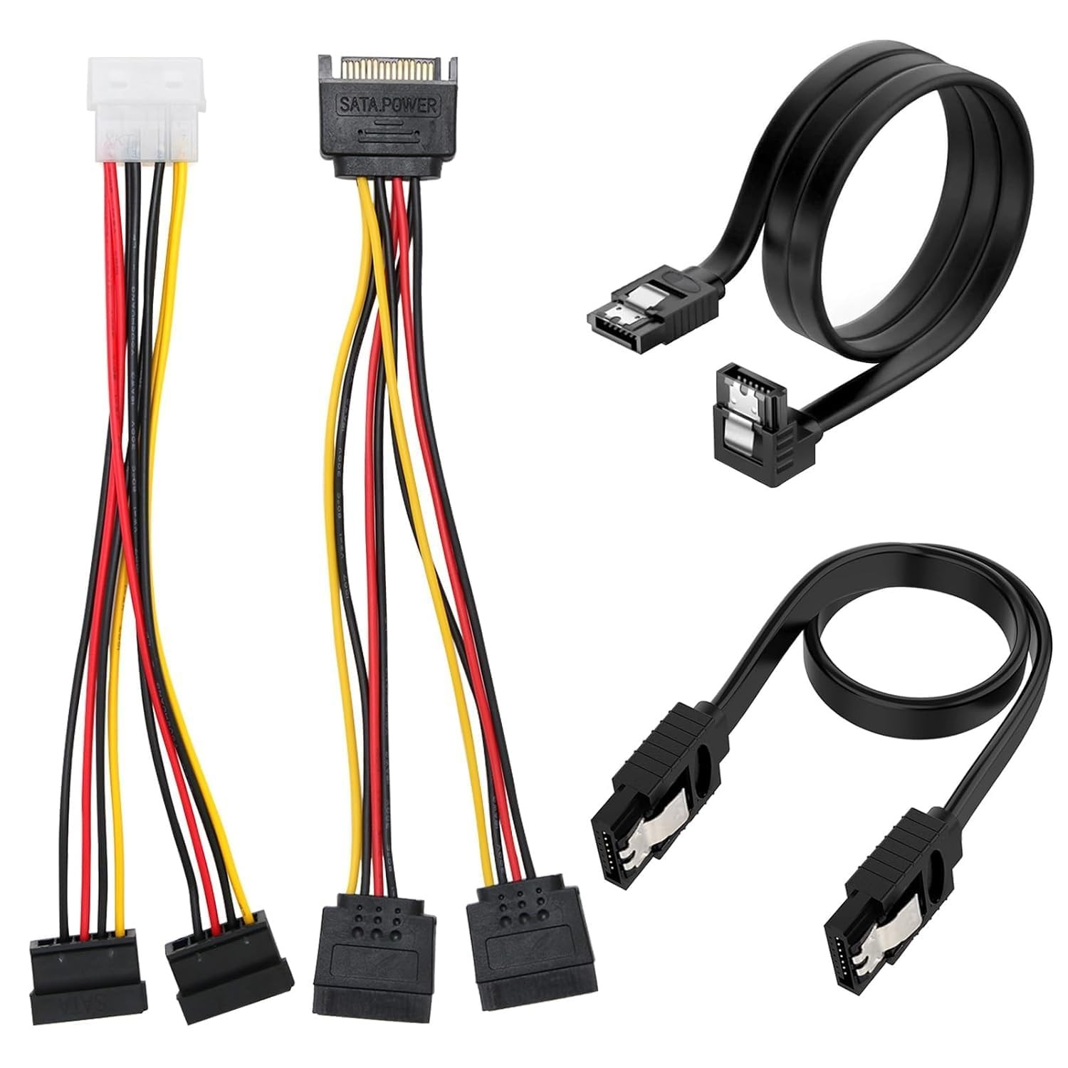 4 Pcs SATA Cables Kit, Comprehensive SATA III Data Power Cables for HDD SSD Rig