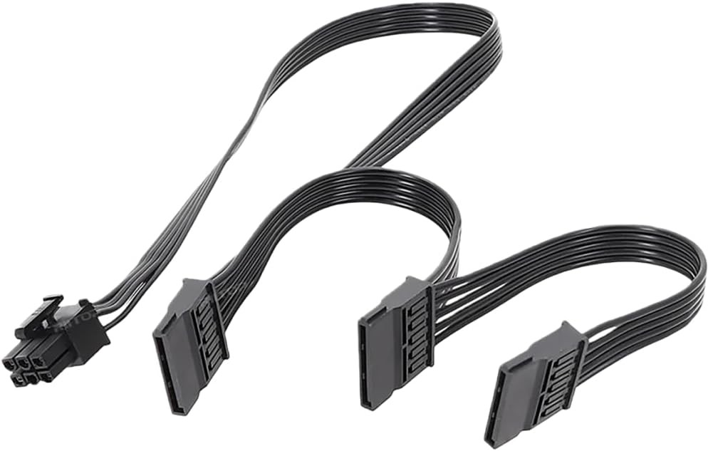 Sata Cables 6-Pin Male to 3X 15-Pin Female Sata Adapter Power Supply Cable for
