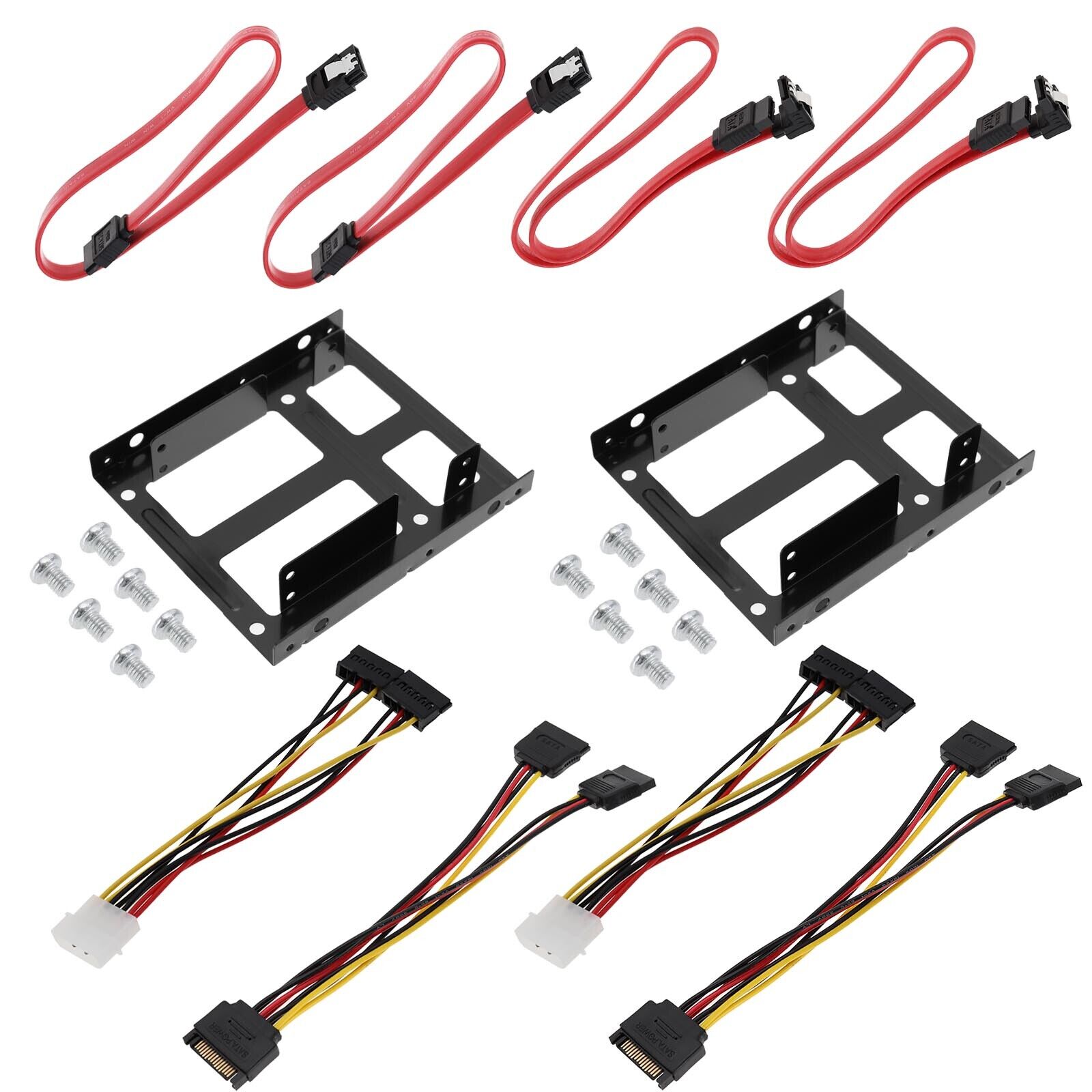 2 Set SSD Bracket Internal Hard Drive Mounting Kit SATA Power Extension Cables