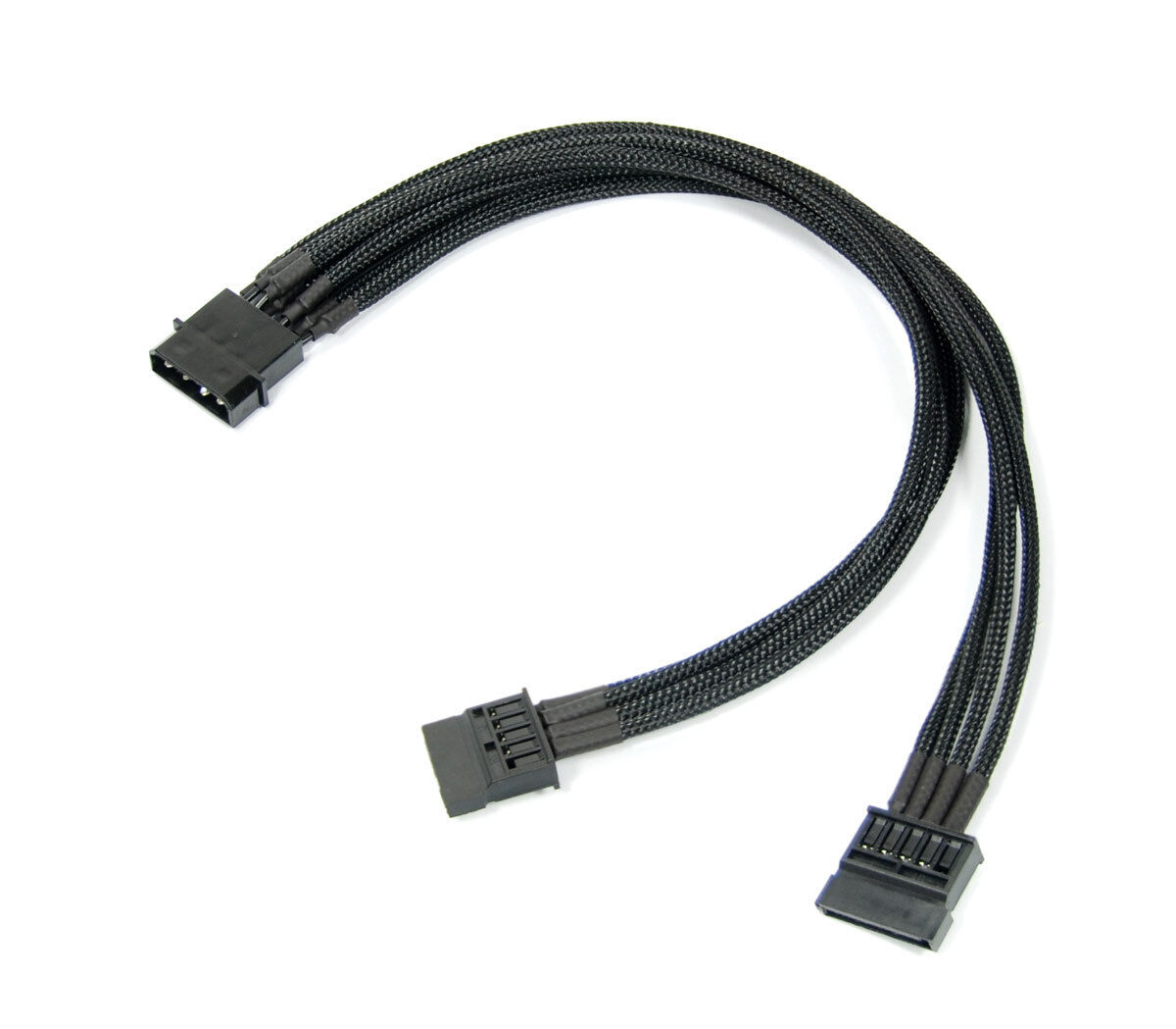Shakmods Male Molex to 2x Sata Power Extension 30cm Splitter Cable Sleeved Black