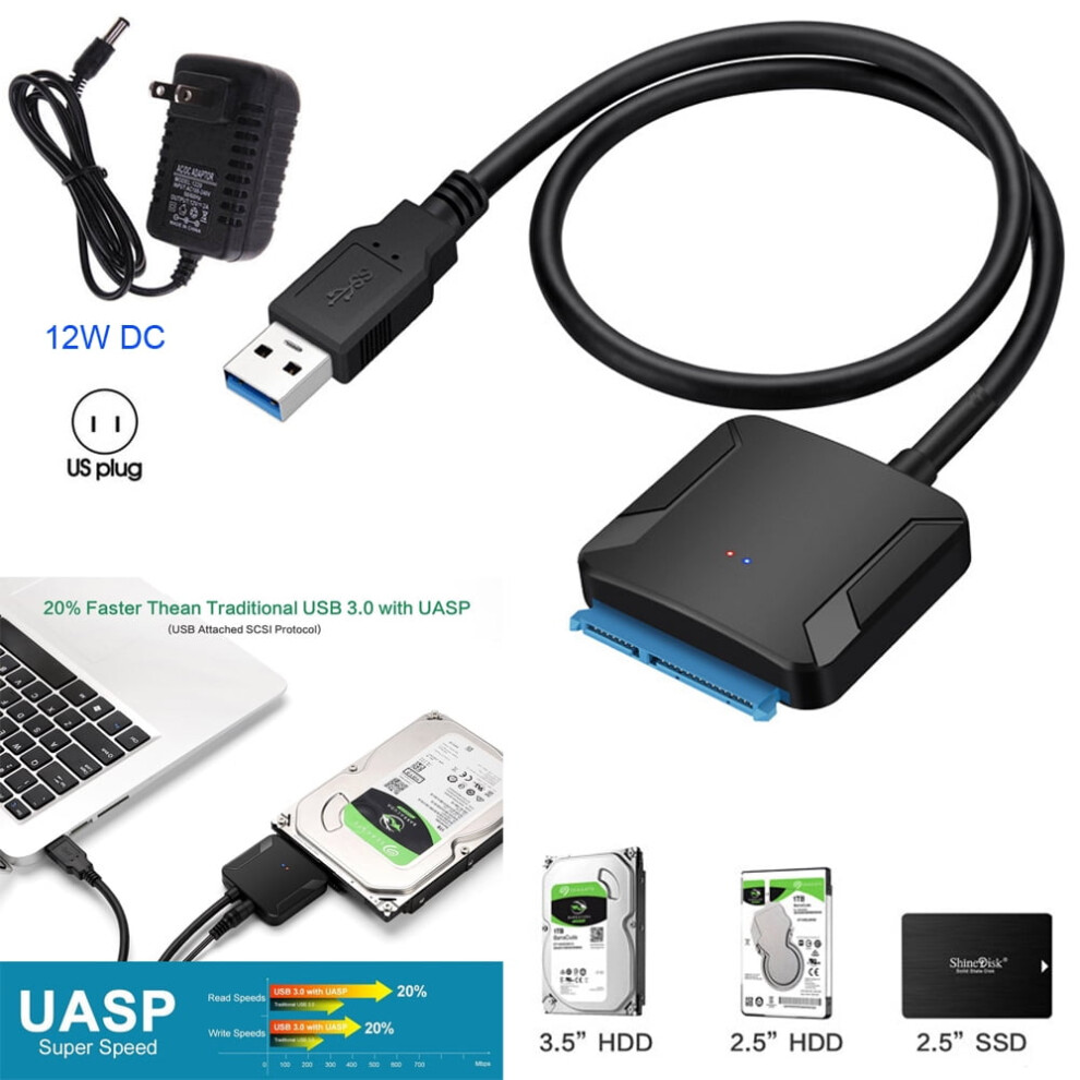 2.5/3.5 inch HDD SSD Adapter UASP SATA to USB 3.0 Converter Cable 12V US Power Driver Free for Laptop
