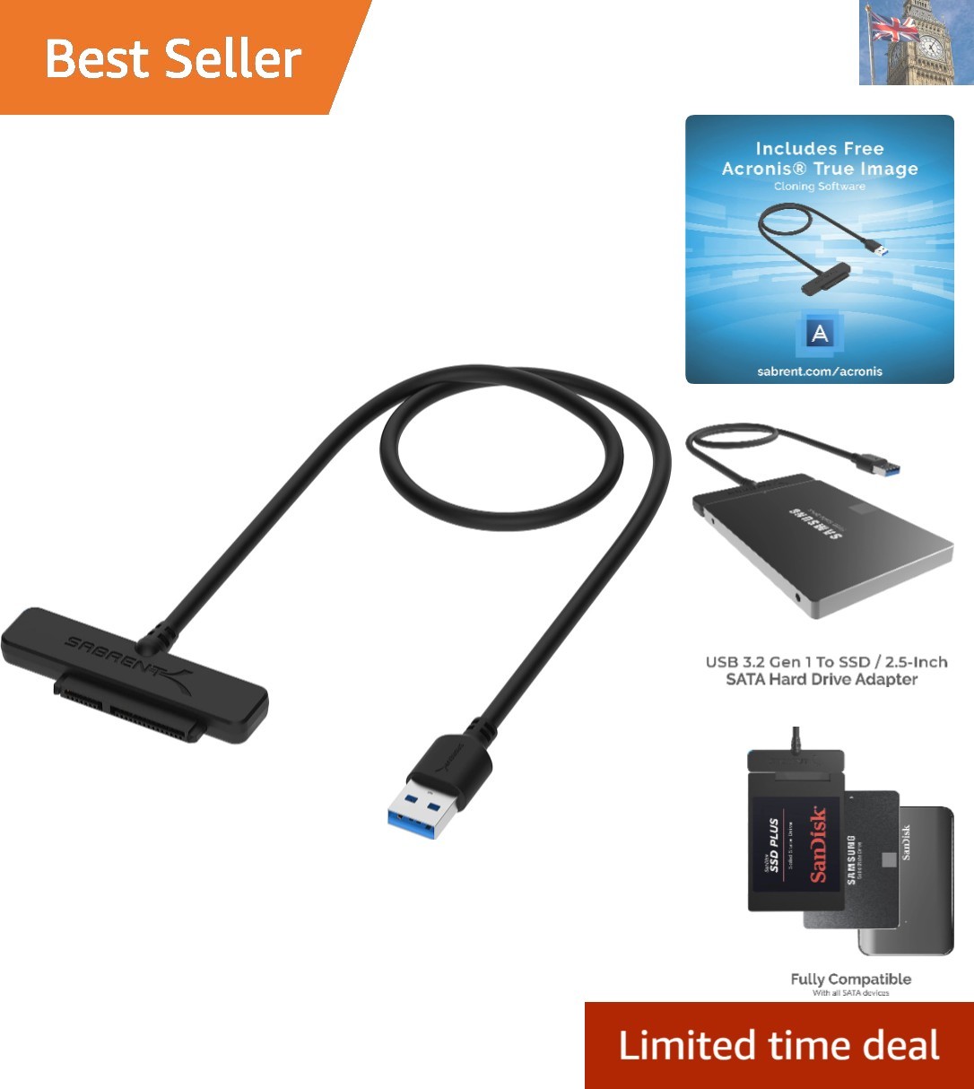 SATA to USB 3.2 Converter for 2.5" Drives with LED Indicator - Easy Cloning