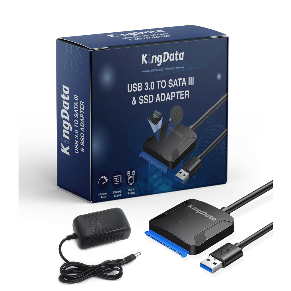 KingData SATA to USB Adapter Converter Hard Drive Reader for 3.5 and 2.5 Inch HDD/SSD, Compatible with Laptop, Raspberry Pi 4, Crucial, WD, Seagate,