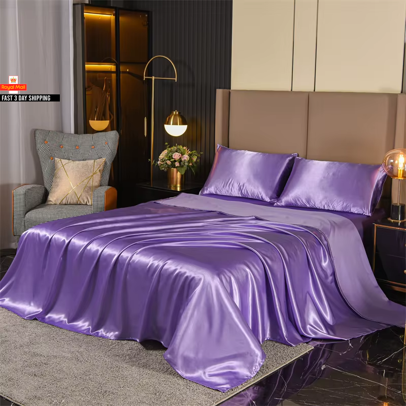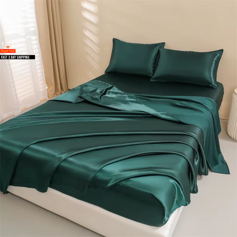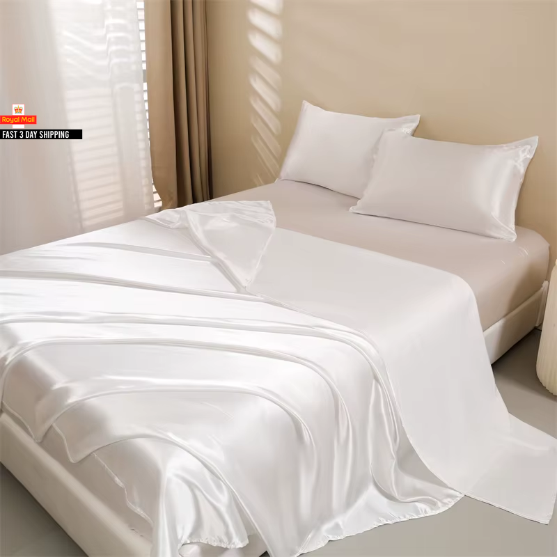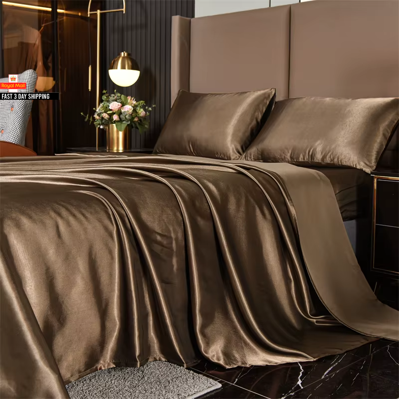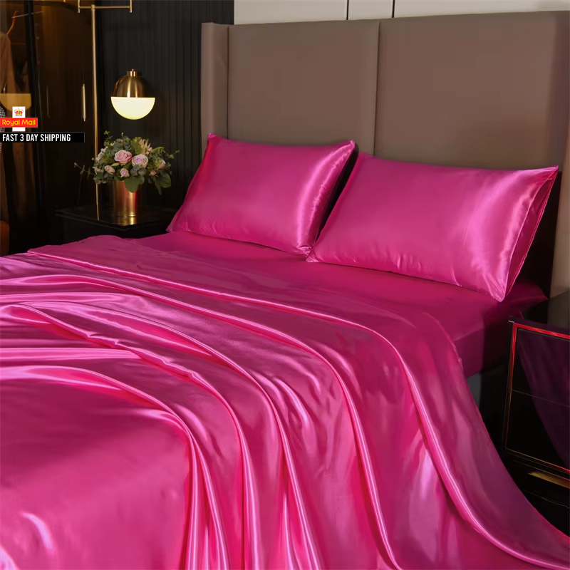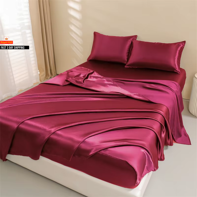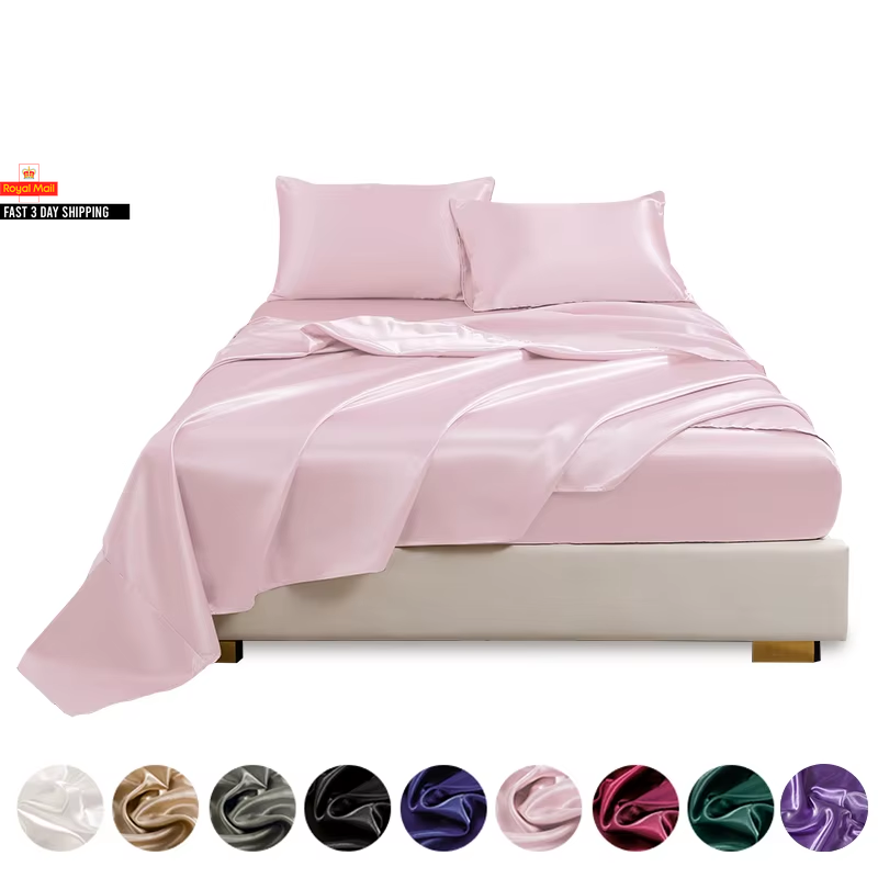 Queen Size Satin Bed Sheets Set, 4 Pcs: Fitted Sheet, Flat Sheet, 2 Pillowcases