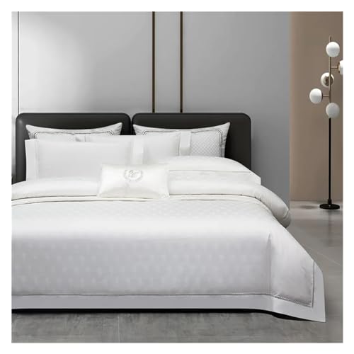 GGYTMQL Four piece bedding set Four Pieces Luxury White Soft Silky Satin Cotton Bedding Set Duvet Cover, Sheet, 2 Pillowcases Embroidery Zippier Corner Ties (C-FITTED BED SHEET-KING 4PCS