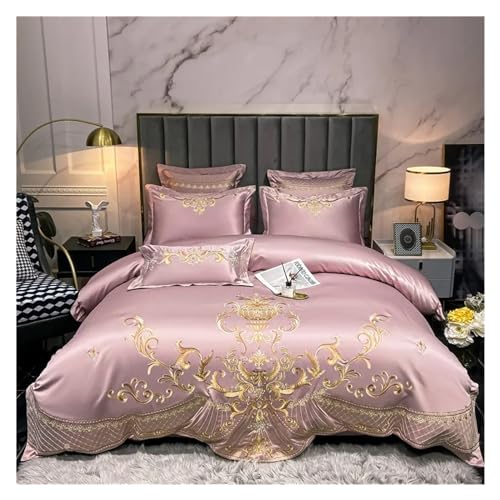 GGYTMQL Four piece bedding set Four Pieces White Luxury European Royal Gold Embroidery 60S Satin and Cotton Bedding Set Duvet Cover Bed Or Fitted Sheet Pillowcases (One Color-Fitted King Size 4pcs