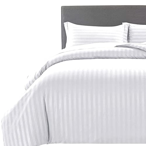 MOONLIGHT20015 Super King Duvet Set Reversible Stripes Satin Bedding Sets with 2 Pillowcases Soft Hypoallergenic Duvet Cover (White 260x220)