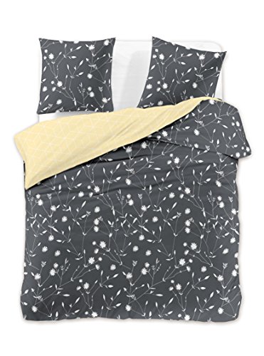 DecoKing Premium Reversible Duvet Cover Set King 230x220 cm with 2 Pillowcases 50x75 cm made with 100% Mako-Satin Cotton Bedding Set Ducato Collection Dandelion Charcoal Grey Yellow White