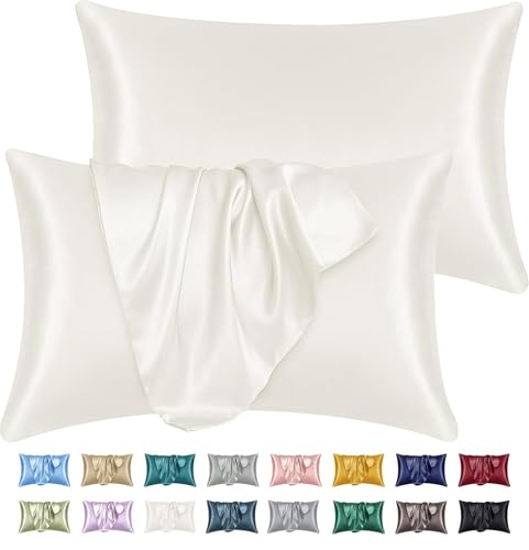 Yorkshire Bedding Satin Pillow Cases 2 Pack – Luxurious Ivory Pillowcases For Hair and Skin Standard Size with Envelope Closure Hypoallergenic 50 x 75 cm
