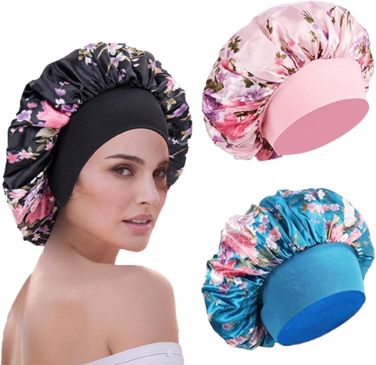 Double Layer Satin Hair Bonnet Shower Cap for Men Curly Braids Dreadlocks Hair