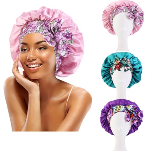 Mecool 2 Pcs Adjustable Shower Caps for women | Reusable Satin Hair Bonnet for