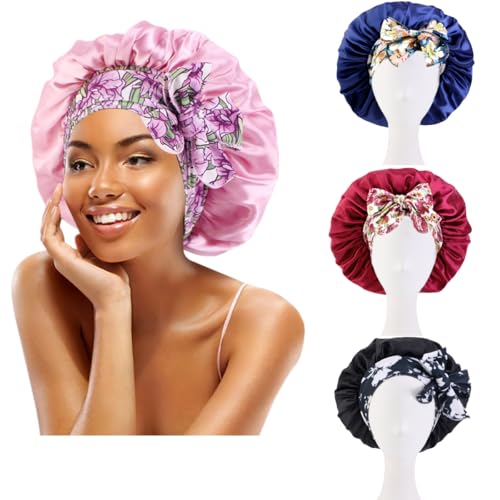 HTTDSLF 4 Pcs Satin Bonnet, Hair Bonnet for Sleeping, Silk Bonnets, Satin Sleep Cap Shower Cap, Hair Care Head Cover Hat for Women Girls