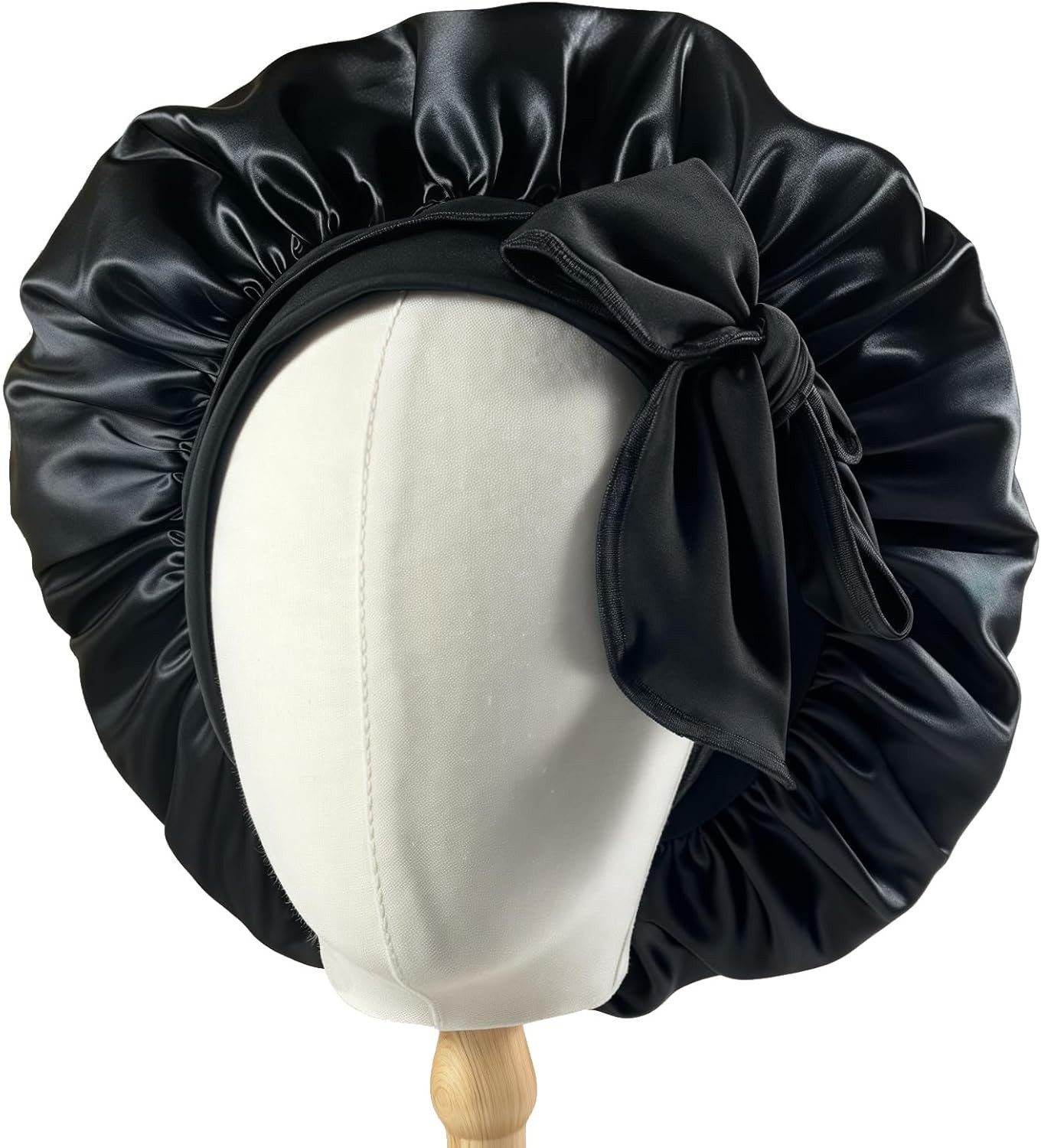 MOXYOY Silk Bonnet, Bonnets for Women, Satin Bonnet Hair for Sleeping, Silk Sleep Cap for Curly Hair Women, Soft and Comfortable for Night Sleep Curly Hair Protection (Black)