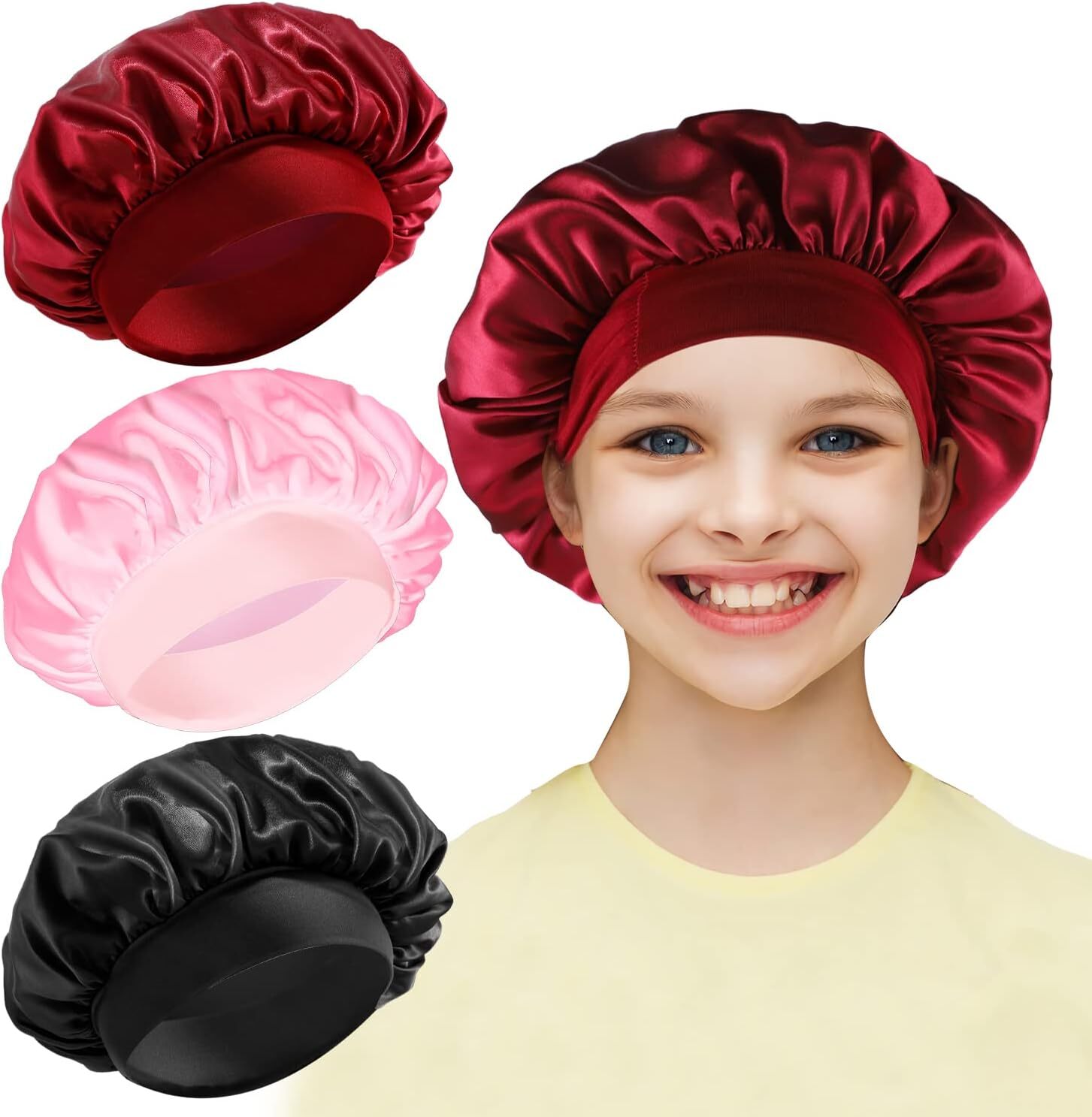 Silk Bonnet for Kids Children Satin Bonnet Hair Bonnets Elastic Wide Band 3 Pcs