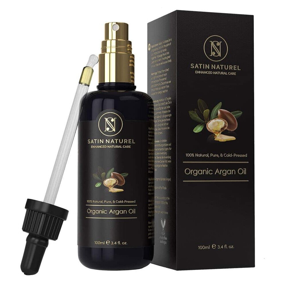 ORGANIC Argan Oil Vegan, Cold-Pressed + 100% Pure 100 ml - Skincare Rich in Vitamins for Anti-Aging, Young, Soft Skin, Healthy Hair & Nails â Satin