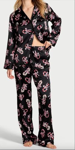 Victoria Black Candy Canes Satin Silk Long Pyjamas Set M 170/96A Regular - Vlctoria'S - Secret