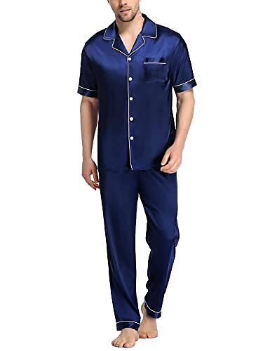 WEISSW Womens Satin Pyjamas Set, 2 Piece Silk Sleepwear With Adjustable Straps Sexy Cami Tops Shorts Nightwear Sleeveless Tank Tops Summer Casual Loungewear Navy Blue Xl
