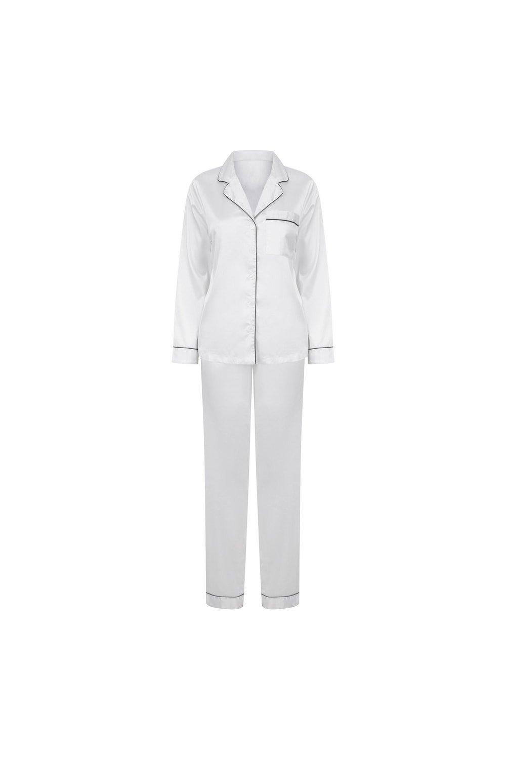 Chovbe Bride to Be Gift Set - White Satin Pyjamas, Bride Shark Hair Clip, MRS Cosmetic Bag, One Size, Perfect for Wedding, Hen Party, Bridal Shower