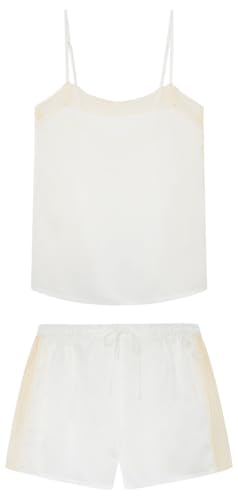 ENJOYNIGHT Womens Satin Pyjamas Set Sexy Lingerie Lace Cami and Shorts Pjs Set Nightwear (Medium,White)