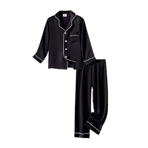 PythJooh Girls Satin Pyjamas Sets Girls Boys Long Sleeve Button-Down Pjs Set 2PCs Silky Nightwear Sleepwear for 3-13Years Black