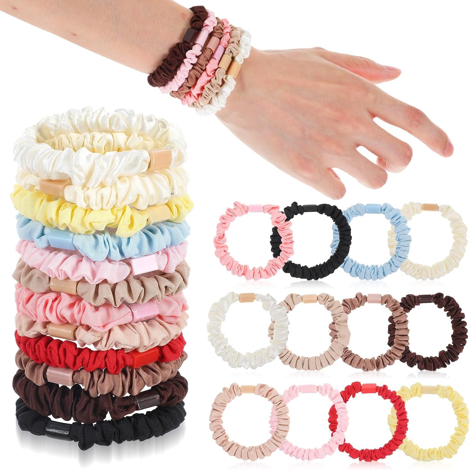 12 Packs Hair Ties| Bands for Woman, Skinny Silk Satin Hair Scrunchies, Small Ponytail Holders No Damage Breakage for Thin/Thick Curly Long Fine Hair