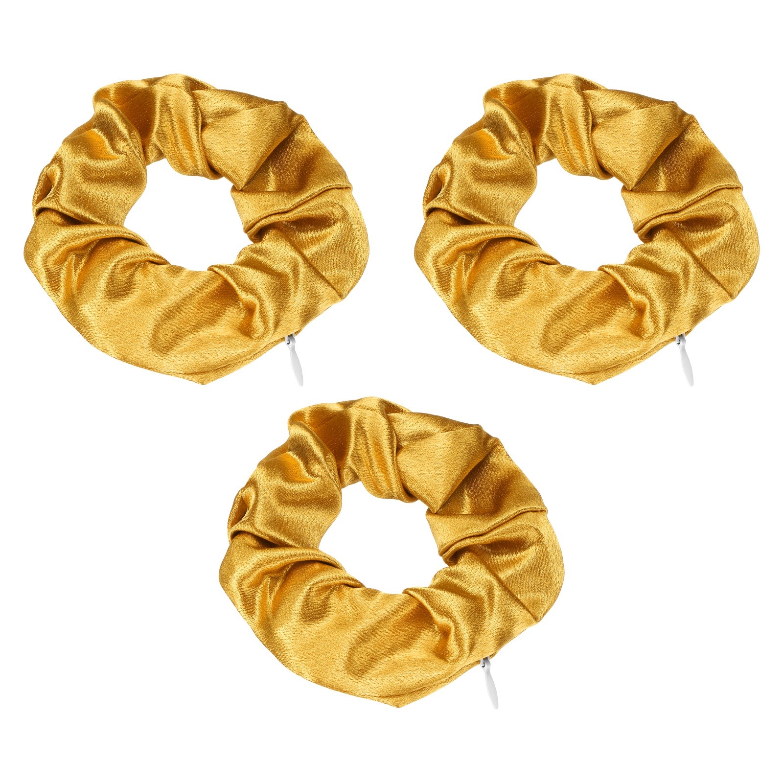 3pcs Silk Satin Scrunchies with Zipper Pocket Elastic Hair Bands Yellow