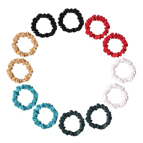 12 Packs small scrunchies for women, Skinny Silk Satin Hair Scrunchies, Small Ponytail Holders No Damage Breakage for Thin/Thick Curly Long Fine Hair