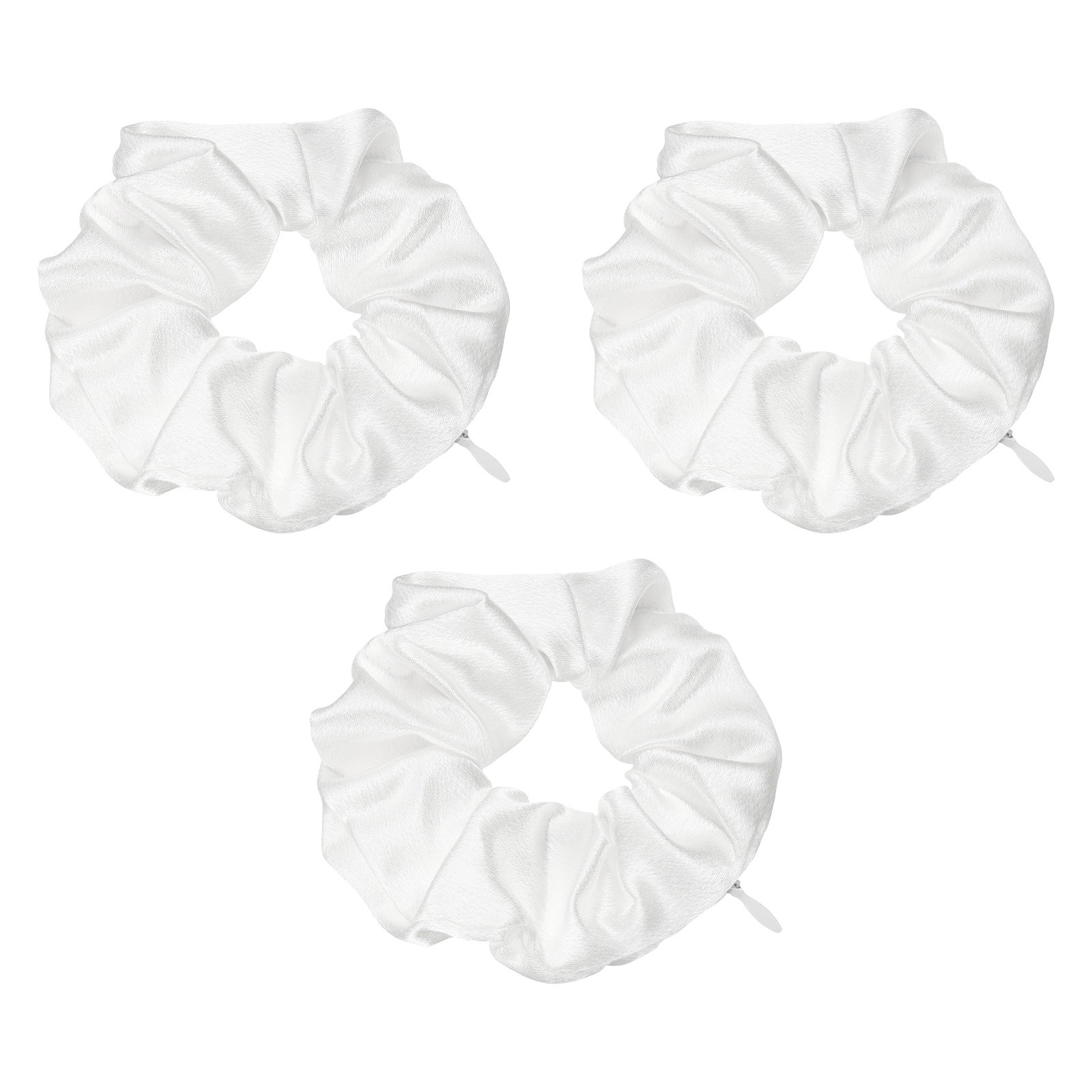 3pcs Silk Satin Scrunchies with Zipper Pocket Elastic Hair Bands White