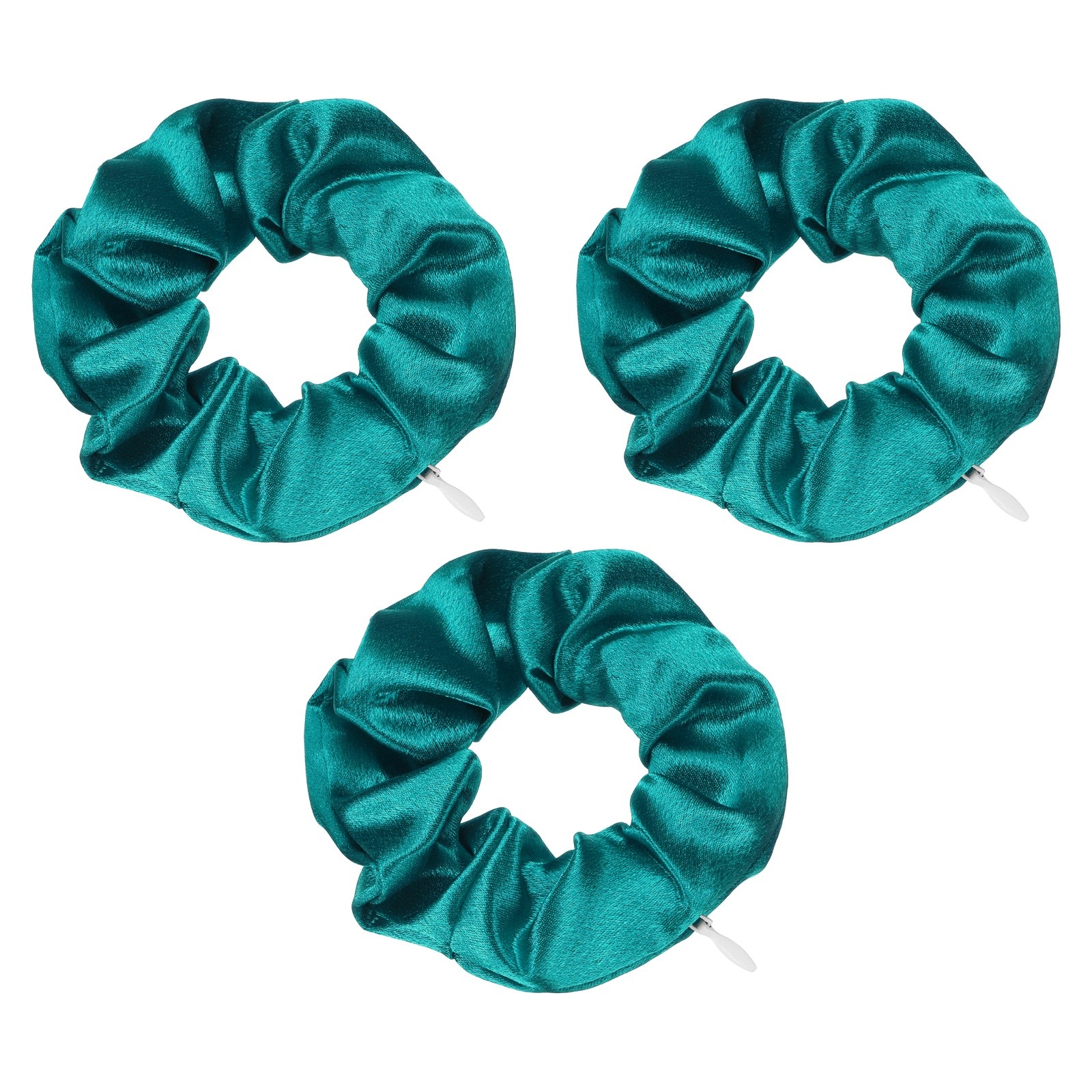 3pcs Silk Satin Scrunchies with Zipper Pocket Elastic Hair Bands Dark Green